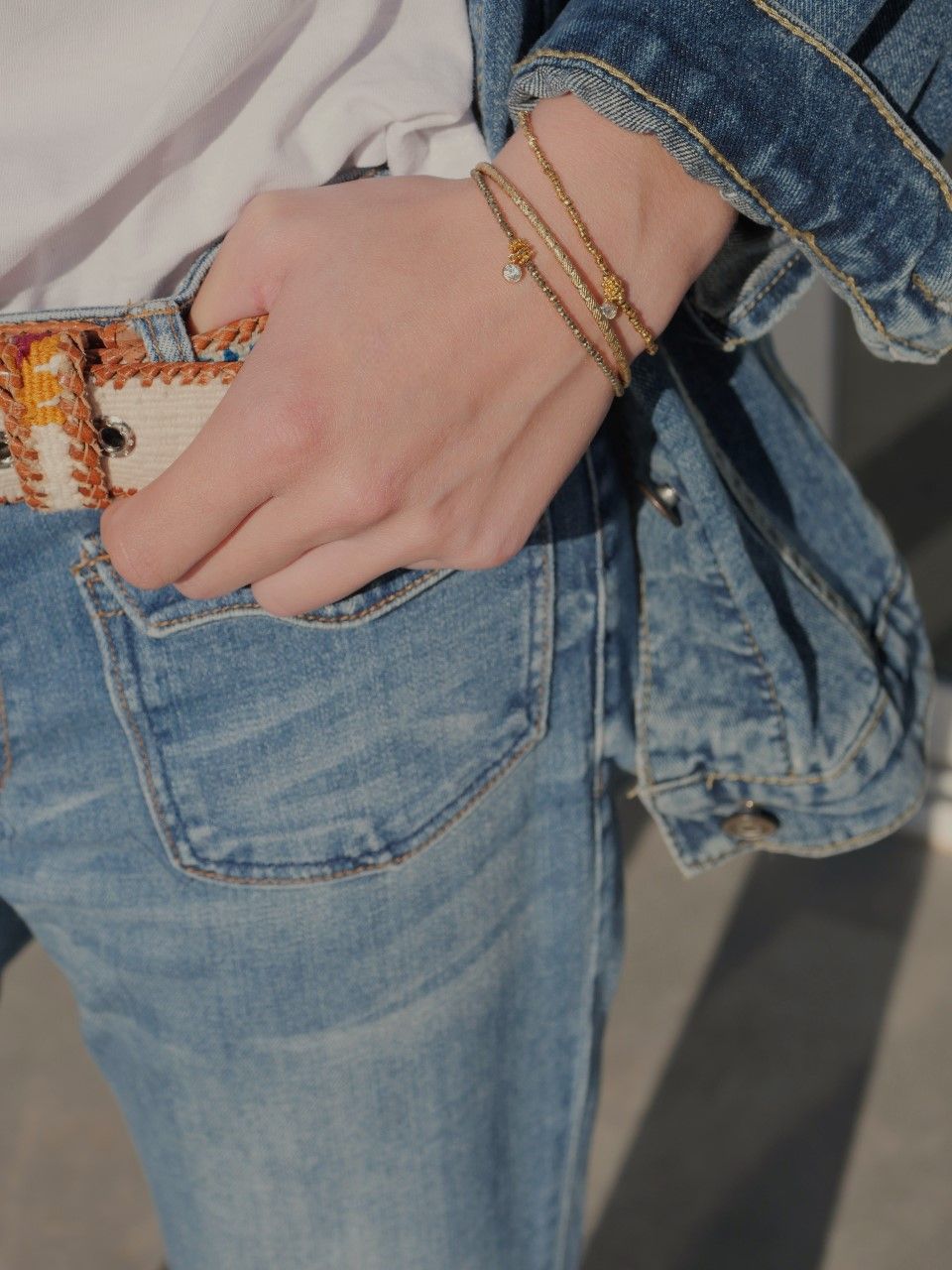 Le bracelet Alba kaki, délicat se distingue par son raffinement et son éclat subtil. Composé de perles en hématites kaki et de perles en forme de fleur plaquées or 3 microns, il apporte une touche sophistiquée et intemporelle. Son charms en Gold filled, orné d’un zircon scintillant, illumine le poignet avec élégance. Un accessoire parfait pour compléter une tenue chic ou rehausser un look du quotidien.