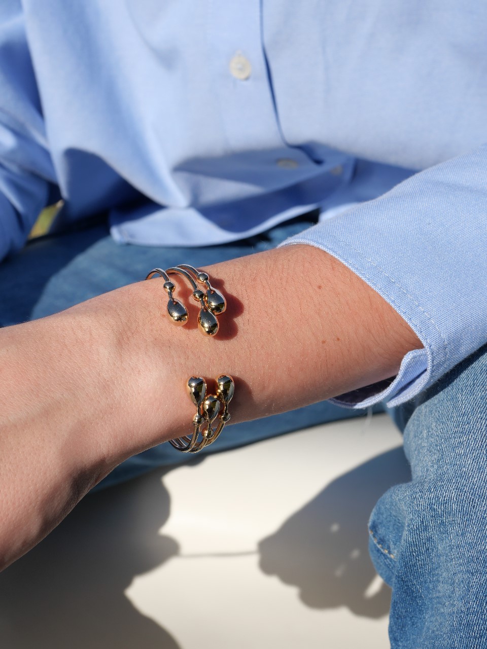 Le bracelet Plume, plaqué or 3 microns apportera une touche d’élégance à votre poignet. Ses deux gouttes créent un design minimaliste et raffiné. Un basique intemporel à porter seul ou à superposer avec d’autres bracelets.