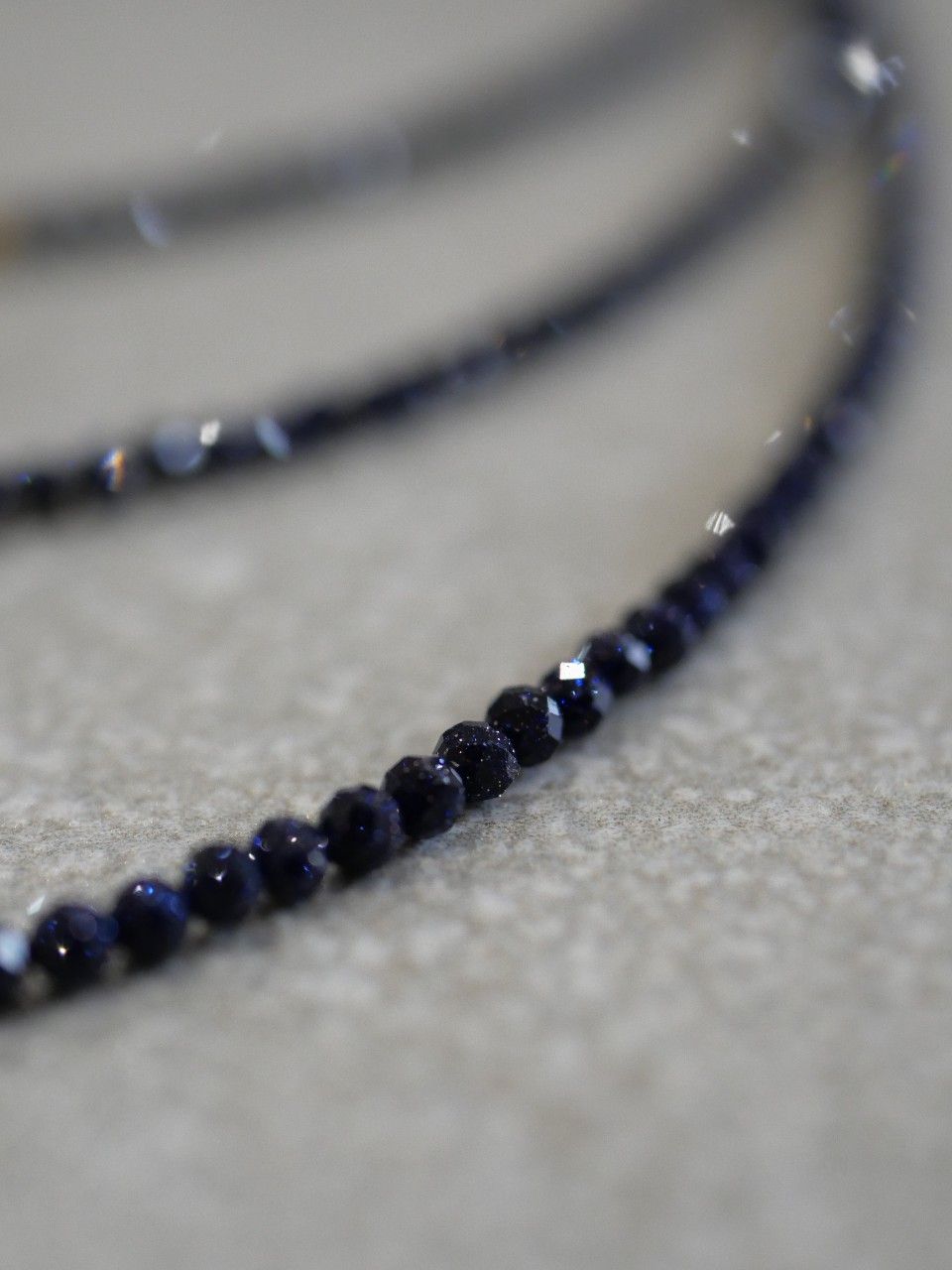 - Blue sandstone 2 mm. Plongez dans la magie étoilée avec la Blue Sandstone, ou pierre de sable bleu. Son bleu profond, constellé de milliers d’éclats scintillants, rappelle un ciel d’été illuminé d’étoiles. Élégante et mystérieuse, cette pierre de synthèse créée par les maîtres verriers, fascine par sa brillance unique. Symbole de rêve et de positivité, la Blue Sandstone inspire confiance et ambition. Elle capte la lumière comme nulle autre, apportant à vos tenues une touche à la fois chic et envoûtante. Un bijou en Blue Sandstone n’est pas seulement un accessoire, c’est une invitation à porter un fragment de ciel au creux de soi.