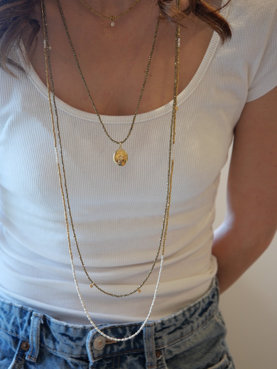 Bijoux en hématite, Colliers, Colliers avec pierres, Colliers plaqués or, Longs (51-130 cm), Signatures